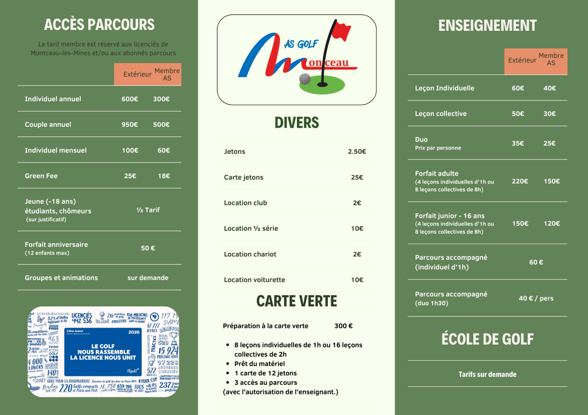 Tarifs - Prestations GOLF